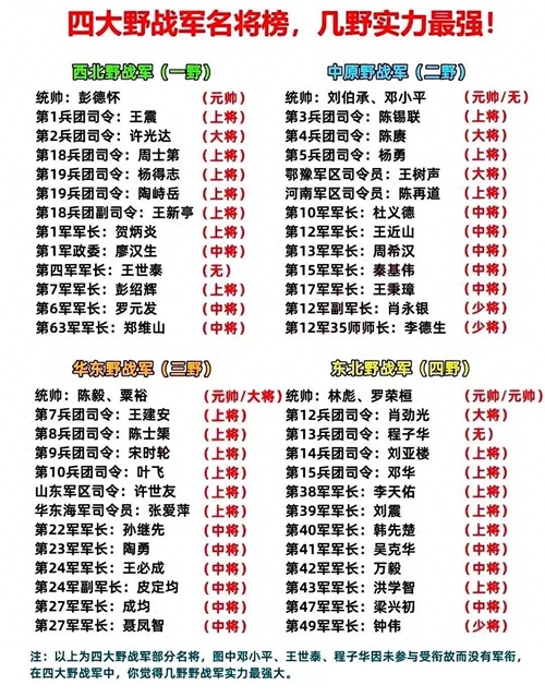 这四支野战军以他们的英勇战斗和牺牲精神,为中国革命的胜利做出了巨大贡献。他们的光辉历史将永远铭记在中国人民的心中,激励着后人继续为实现中华民族伟大复兴的中国梦而努力奋斗。