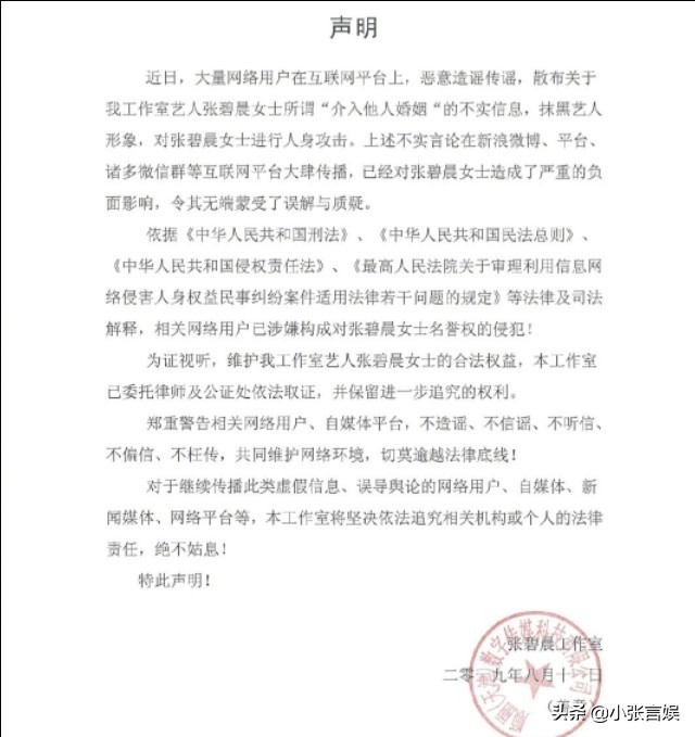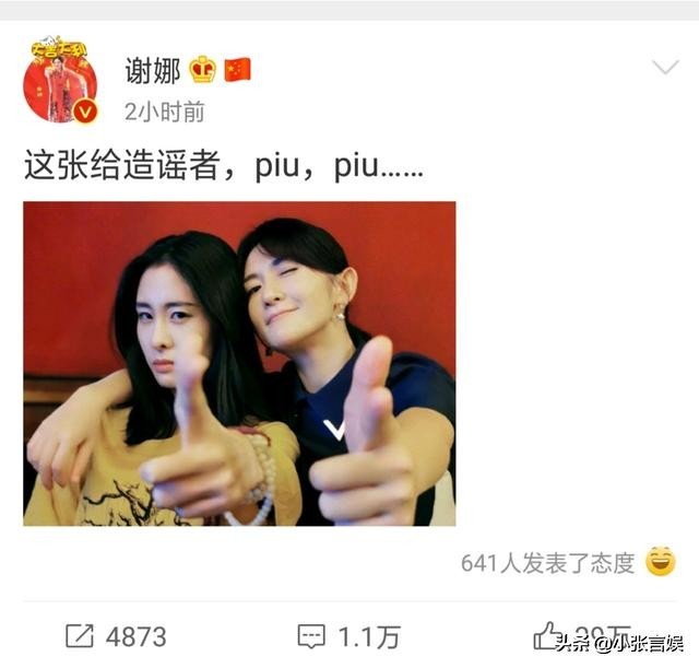 早在8月11日,张碧晨工作室便发了声明指责关于张碧晨介入他人婚姻的谣言,今日中午,娜姐本尊也在微博上放出了和张碧晨的合照,并配文“给造谣者,biu,biu……”娜姐也是很刚了,因为谣言已经严重影响了别人的生活了,也就不得不正面回击了。