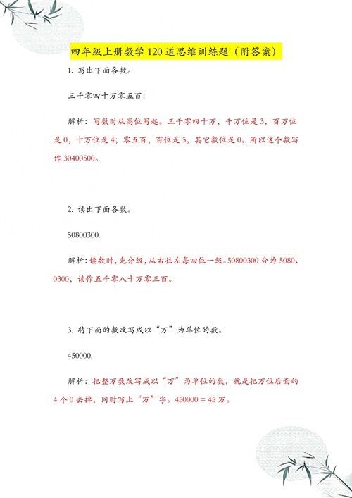 四年级上册数学:提升数学逻辑思维,吃透这120道必做思维训练题
