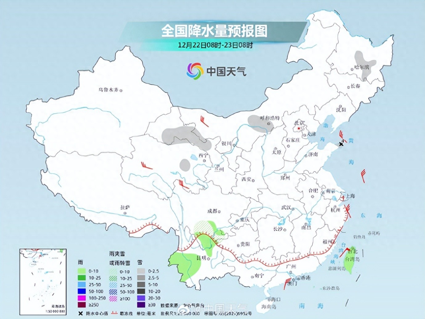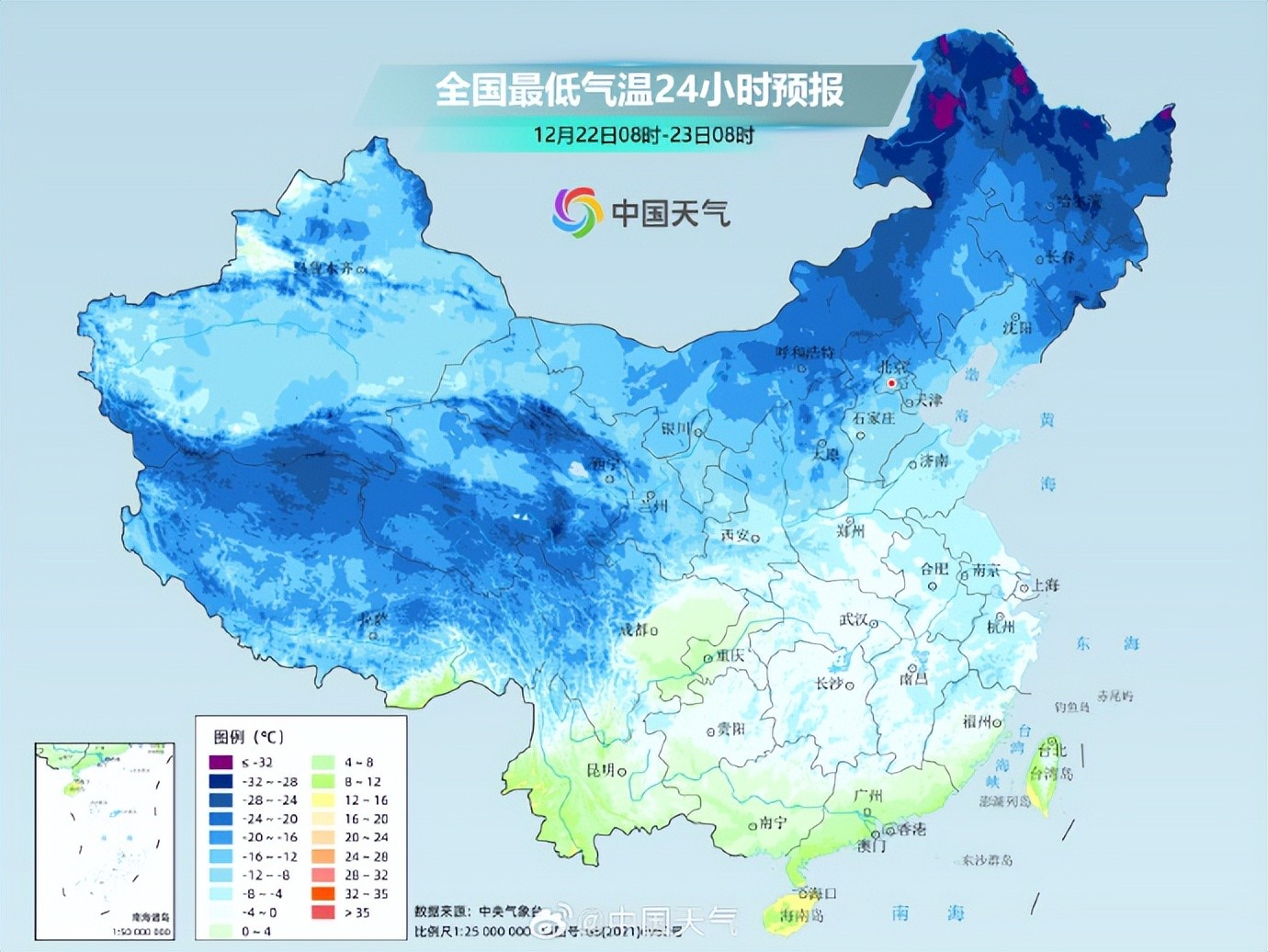 12月22日,据中国天气报道:今天(12月22日)进入冬至节气,也是“数九”的第一天,全国大部天气将维持晴朗干燥模式,多地气温仍将较常年同期明显偏低,黄淮至华南不少地方气温还可能刷新今冬以来新低。
