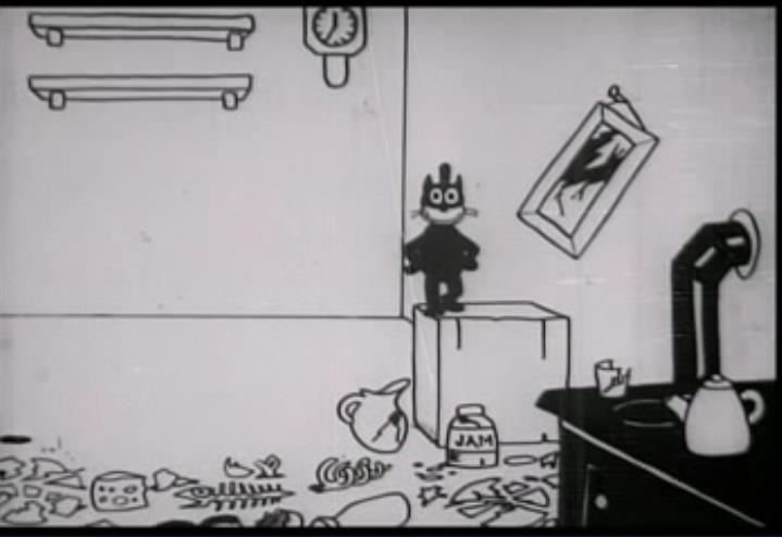 一位画家正在案头作画,从桌子上的 墨水瓶里钻出一个墨汁变的小黑人。 小黑人不停地捣乱,搞得画家无法工作。画家气愤地捕捉小黑人,小黑人十分机灵,到处乱窜,弄得房间里一 塌糊涂。最后,画家在床底下捉住了 小黑人,仍旧把他塞进墨水瓶里。