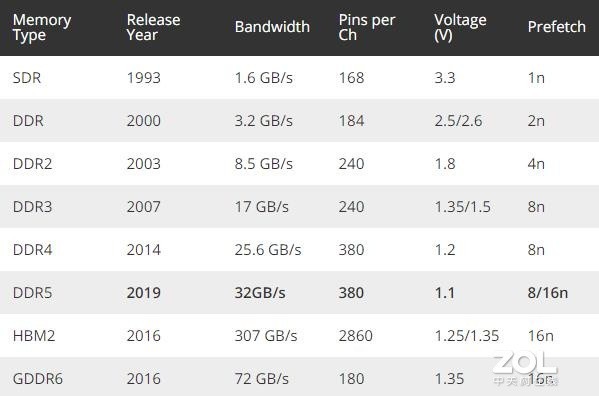 在规格方面,DDR5还是非常给力的。与DDR4相比,DDR5功耗更低、频率更高。DDR5的电压为1.1V,频率起步4800MHz,最高可达6400MHz。而且美光DDR5采用了1Znm工艺,估计不是12nm就是14nm。