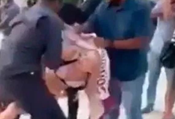 当她的男性朋友试图用一条小毛巾盖住她身体的一部分时,她对三名警察大喊,“你在性侵我”她尖叫着,“任何进入我私人空间的人,我都会有意见。”