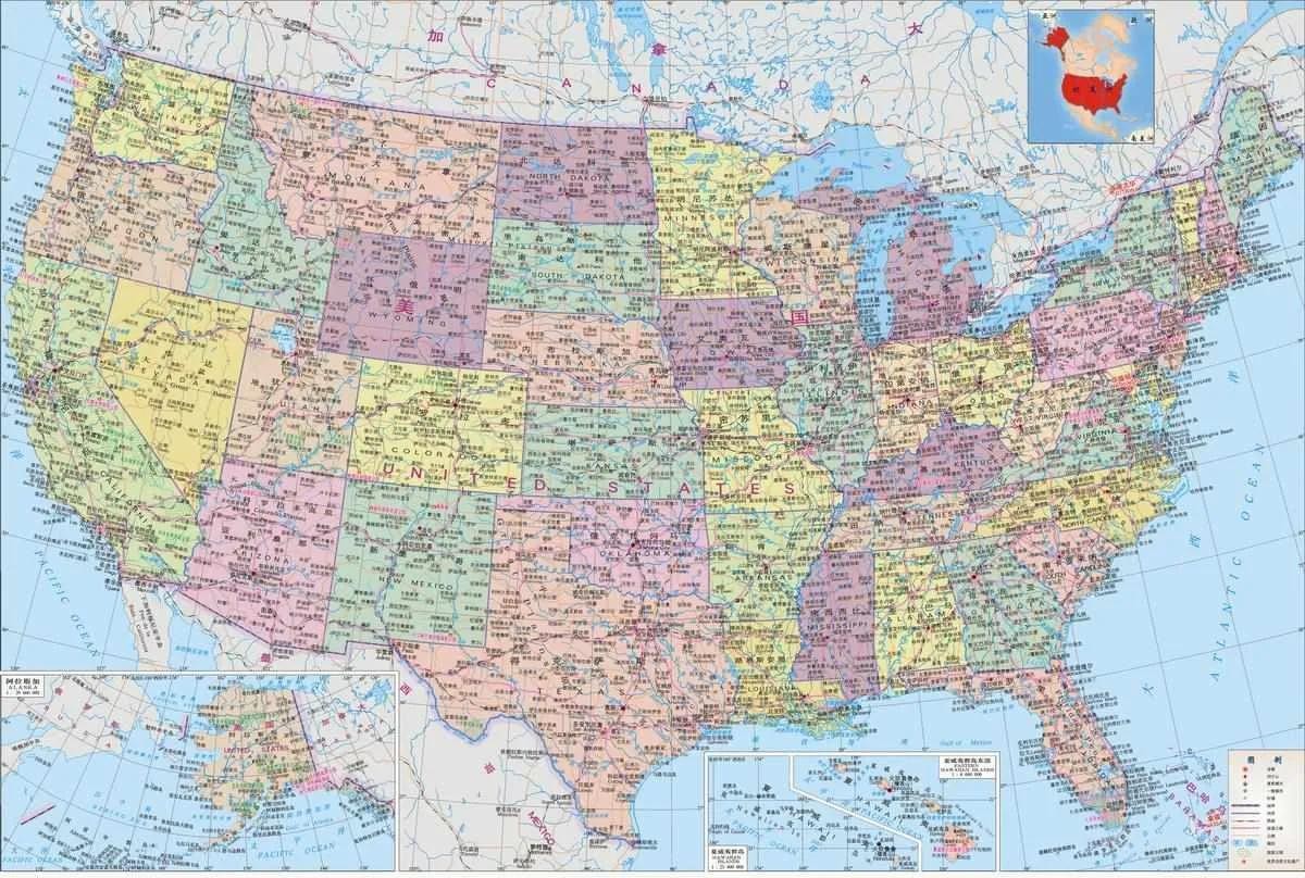 美国西边为太平洋,东边为大西洋,是一个极其发达的国家,作为一个世界警察,美国还划分了6大战区,军事实力可谓一流,海岸线19924公里