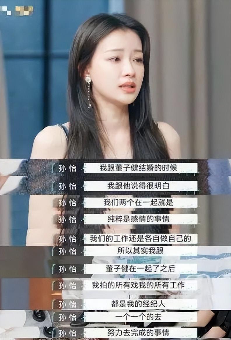 孙怡在节目上曾说自己结婚前就和董子健说好了,各干各的工作,不沾王京花的光,自己所有的资源都是经纪人去谈来的。