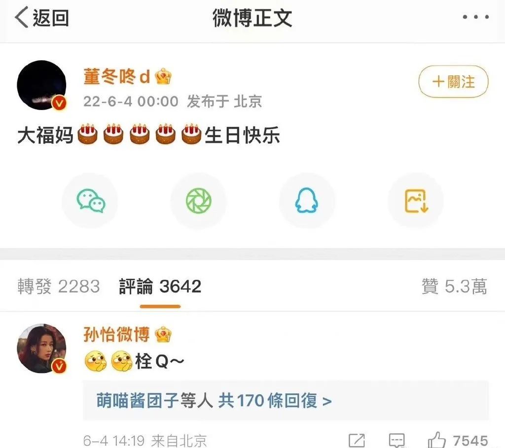 6月4日是孙怡的生日,当天董子健蹲点送上祝福,甜蜜的行为下,眼尖的网友却发现董子健给孙怡的称呼变成了“大福妈”。