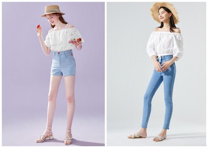 荷叶边一的字肩上衣,搭配半身裙才是最好看。比如白色荷叶边一字肩上衣搭配蓝色牛仔半身裙,造型甜美青春。