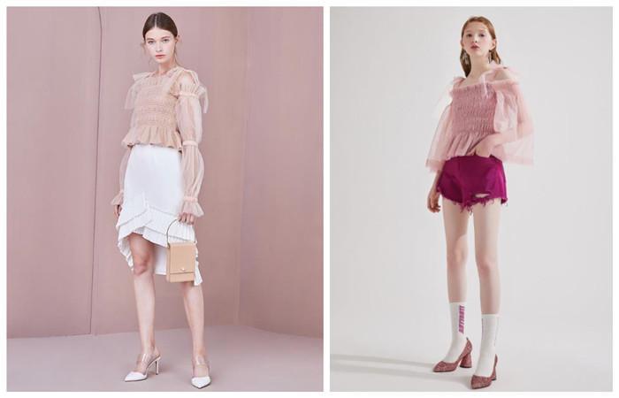 一字肩上衣除了白色之外,青春活力的女生也非常适合粉色,粉色非常梦幻,也非常符合青春活力的女生穿着,非常有元气感。比如粉色荷叶边+灯笼袖设计的一字肩连一起真的非常好看。