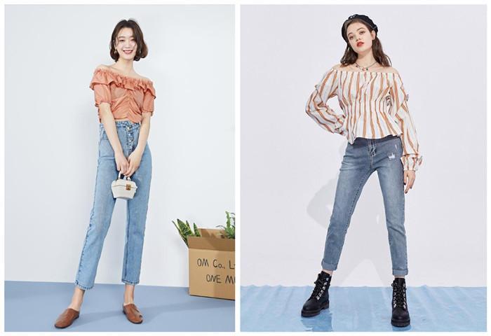 年纪轻的女生,穿一字肩上衣,真的非常时尚青春,走在街上就是一道风景线。而桔色的荷叶边一字肩搭配蓝色紧身牛仔裤,穿上一双焦糖色的单鞋,拿上白色包包就能美美哒出去了。