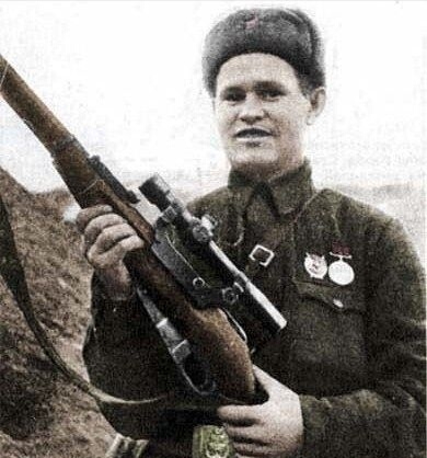 二战期间是第一千一百二十二步枪军团总部的助理指挥官,后因多次受伤,最严重的是在爱沙尼亚,虽然因伤退出,但也得到苏联英雄的称号!狙击时使用苏联的莫辛-纳甘,战绩超500人(另有其他战争击毙二百人)。战争结束后就退休了,落户在车里雅宾斯克,在乌拉尔从事煤矿工作(工头)。1974年移居居民吉斯坦共和国的高加索。
