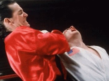 高刚在少林学艺多年,武功扎实,起初一直占据上风,将特里弗打得节节败退。