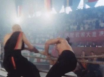 只见对方模仿着李小龙标志性的啸叫和战斗姿势,可迎接他的只有毫不留情的老拳。