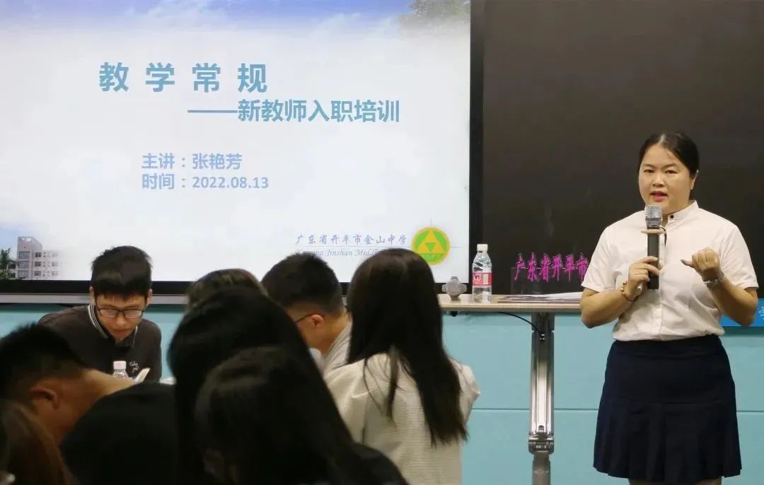▲开平市教育局党组书记、局长张峰亲临开平市金山中学指导新教师培训工作