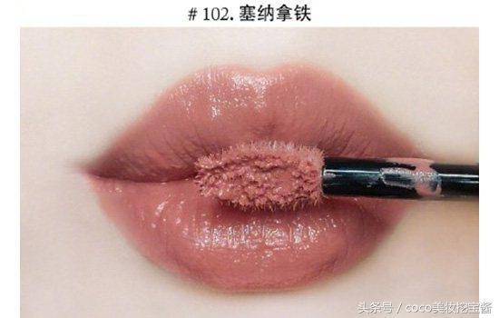 奶茶豆沙色,也是很温柔的颜色,既像豆沙色,又像奶茶色,上唇后是和肤色比较接近的颜色,质地滋润,不显唇纹,是一个比较百搭的颜色。
