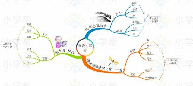 四年级下册语文第一课《古诗三首》思维导图,帮助孩子学习导图