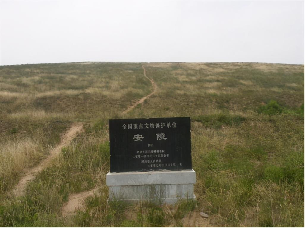 安陵是西汉惠帝刘盈与皇后张嫣的陵寝,位于咸阳原汉高祖刘邦长陵西侧,东侧大坟丘为汉惠帝陵冢,西侧为张皇后陵冢。陵冢北侧发现安陵邑遗址,附近存有鲁元公主、张敖、陈平等十二座陪葬墓,出土了大量武士俑、乐舞俑、动物俑等文物。