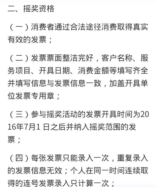 操作如下:支付宝搜索—发票管理—发票摇奖—填写发票相关资料(或者直接扫发票上的码)—开始摇奖就能知道自己有没有中奖了。奖金分为100元、50元、20元、10元、5元等五个奖项,即时开奖。但是中奖率还是挺低的,但是个人开的发票不能报销,侥幸中奖了呢,一杯奶茶钱就有了