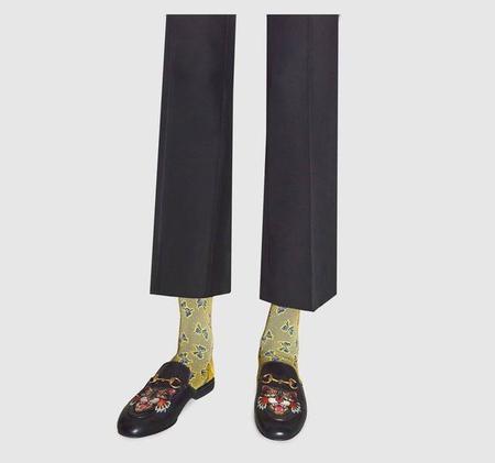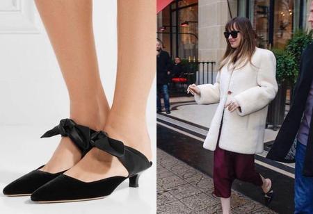 穆勒鞋的本意是指包裹着脚背不露脚趾只露脚跟的高跟鞋。随着复古风潮的流行,gucci(图二)推出了刺绣穆勒鞋,穆勒鞋再次被推上潮流的舞台。而当穆勒鞋结合小猫跟,(图一)小猫跟与蝴蝶结袢带搭配出优雅的淑女风情,这一黑色穆勒鞋是the row品牌时下各明星潮人都超爱的一款鞋子,能轻松搭配中长半身裙、连衣裙和牛仔裤等各式装束。